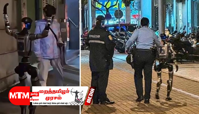 தகவலறிந்த 2 காவல்துறையினர் உடனடியாக சம்பவ இடத்திற்கு விரைந்து வந்து, குற்றவாளியை அழைத்து செல்வது போல் அந்த ரோபோவை அழைத்து சென்றனர்.