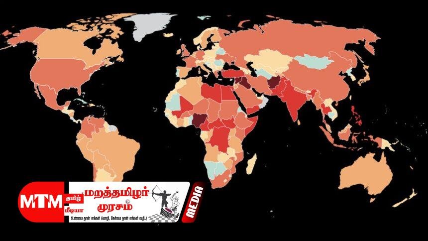 ஆப்கானிஸ்தான் 11வது இடத்திலும், இந்தியா 13வது இடத்திலும், ரஷ்யா 17வது இடத்திலும், ஈரான் 18வது இடத்திலும் உள்ளது.
