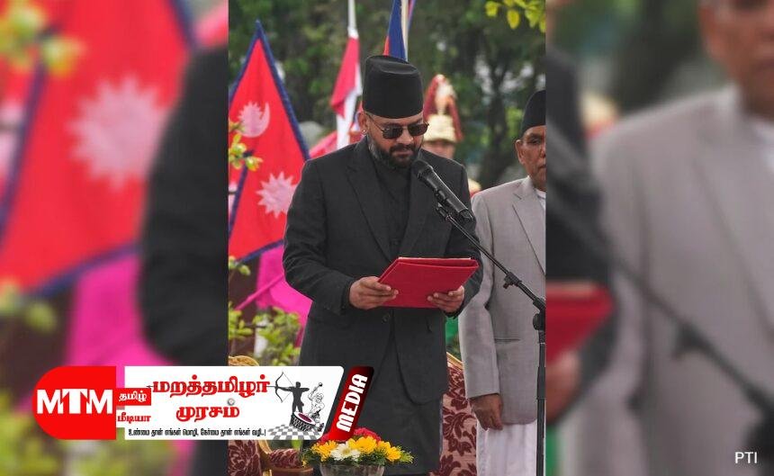 பதவியேற்பு விழாவில் நேபாள ஜனாதிபதி ராம் சந்திர பவுடேல் அவருக்கு சத்தியப்பிரமாணம் செய்து வைத்தார்.