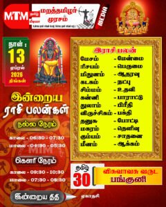 இன்று பிள்ளைகளின் நலனுக்காக முக்கியமான விஷயங்கள் செய்யவேண்டும் என்று கருதுவீர்கள். மனைவி உடல் நிலையில் நீங்கள் முழுமையான கவனம் செலுத்த வேண்டிய நாள்.