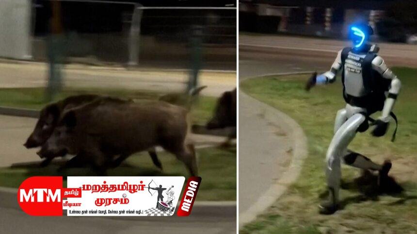 வார்சா நகரில் காட்டுப்பன்றிகளை ஹியூமனாய்டு ரோபோ ஒன்று துரத்தும் வீடியோ இணையத்தில் வைரலாகி வருகிறது.