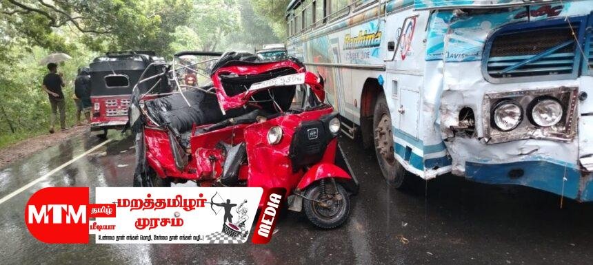 முச்சக்கர வண்டி வீதியை விட்டு விலகி தனியார் பஸ் மீது மோதிய காட்சி பஸ்ஸில் பொருத்தப்பட்டிருந்த சிசிடிவி கெமராவில் பதிவாகியுள்ளதாக பொலிஸார் தெரிவித்தனர்.