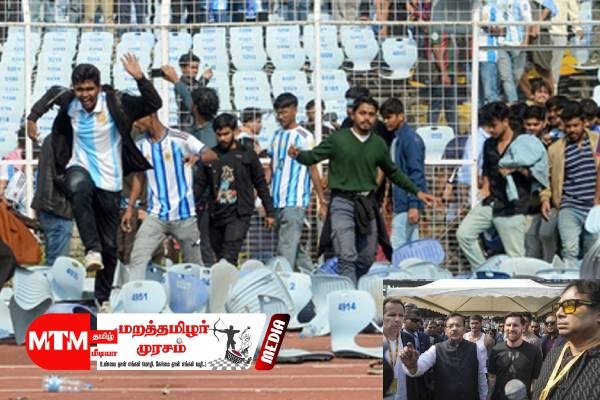 மெஸ்ஸியை சுற்றி பலர் கூடியதால் அங்கு குழப்பம் ஏற்பட்டது. பின்னர் அவர் விரைவாக வெளியேறியதால் ரசிகர்கள் கோபப்பட கலவரம் வெடித்தது.