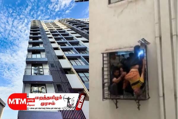 அவர் 8வது மாடியில் ஜன்னல் கம்பியில் தொங்கும் நிலையில், மீட்கப்படும் வீடியோ இணையத்தில் வைரலாகி வருகிறது.