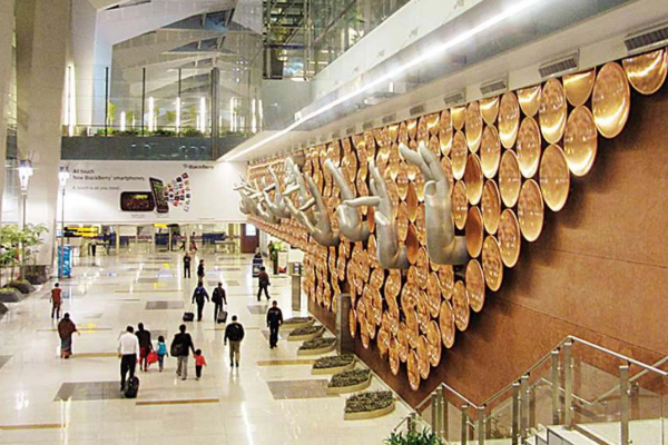 இந்தியாவின் மிகப் பரபரப்பான விமான நிலையமான டெல்லி ஐஜிஐ, நவீன வசதிகளுக்கும் அழகான வடிவமைப்புக்கும் பெயர் பெற்றது.