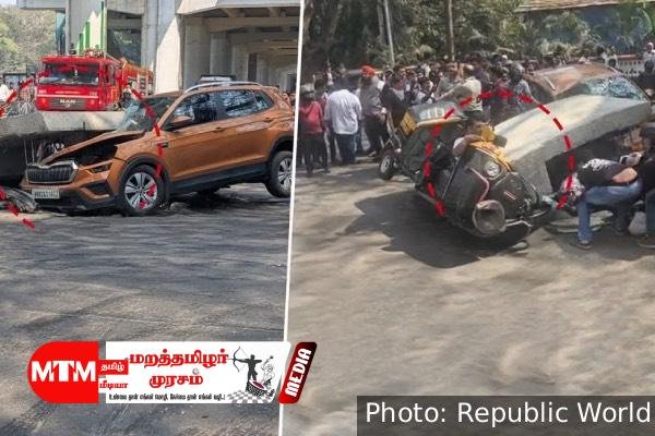 இந்த விபத்தின் போது கட்டுமான பகுதிக்கு கீழே சென்று கொண்டிருந்த ஆட்டோ மற்றும் கார்கள் பலத்த சேதமடைந்தது.