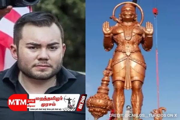 அமெரிக்காவின் டெக்சாஸ் மாகாணம் சுகர் லேண்ட்(Sugar land)பகுதியில் அமைந்துள்ள ஶ்ரீ அஷ்டலட்சுமி கோயிலின் 90 அடி பிரம்மாண்ட அனுமன் சிலை குறித்து டல்லாஸ் ஃபோர்ட் வொர்த்(Dallas fort Worth) பகுதியை சேர்ந்த குடியரசுக் கட்சி நிர்வாகியும், மாகா(MAGA) அமைப்பின் ஆதரவாளருமான கார்லோஸ் டர்சியோஸ்(Carlos Turcios) சர்ச்சைக்குரிய கருத்து ஒன்றை தெரிவித்துள்ளார்.