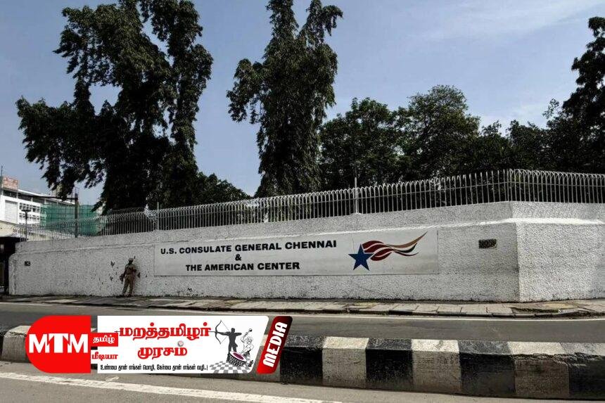 அதேபோல் தூதரகத்தை சுற்றியுள்ள கதீட்ரல் சாலை, அவ்வை சண்முகம் சாலை, பீட்டர்ஸ் சாலை ஆகிய பகுதிகளில் தீவிர பாதுகாப்பு பணியில் பொலிஸார் ஈடுபட்டுள்ளனர்.