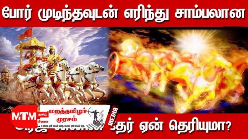 மேலும், கிருஷ்ண பகவான் தேரை விட்டு குதித்த அந்த கணமே தேர் தீப்பற்றி எரிந்து போனது. கிருஷ்ணர் அர்ஜுனனிடம் பார்த்தாயா தேர் எரிகிறது. அதனால்தான் உன்னை கீழே இறங்கச் சொன்னேன் எஎன்றார்.