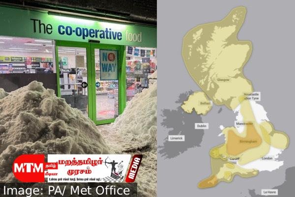 தீவிரமான ஆம்பர் பனி எச்சரிக்கை விடுக்கப்பட்டுள்ள மத்திய வேல்ஸ் மற்றும் மிட்லாண்ட்ஸ் மேலும் வடக்கில் உள்ள சில பகுதிகள் ஆகியவற்றுக்கு 30CM வரையிலான பனிப்பொழிவு இருக்கும் என்று ஊகிக்கப்பட்டுள்ளது.