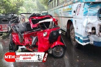 பஸ்ஸுடன் நேருக்கு நேர் மோதிய முச்சக்கரவண்டி; தாயும், மகனும் பலி