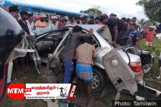 கிளிநொச்சியில் பேருந்துடன் மோதிய கார்: வாகன விபத்தில் இருவர் பலி